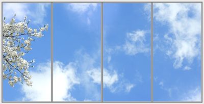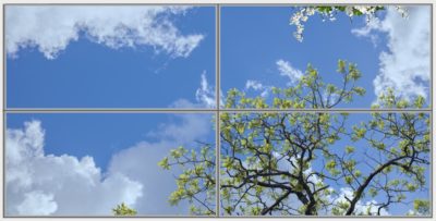 Nous proposons un ciel « à la carte » en jouant sur les nuages, les nuances de bleus, la floraison, le feuillage ou la saisonnalité.